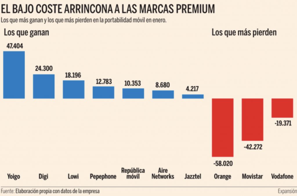 Yoigo, DigiMóbil y Lowi arrasan en portabilidad a las marcas 'premium'